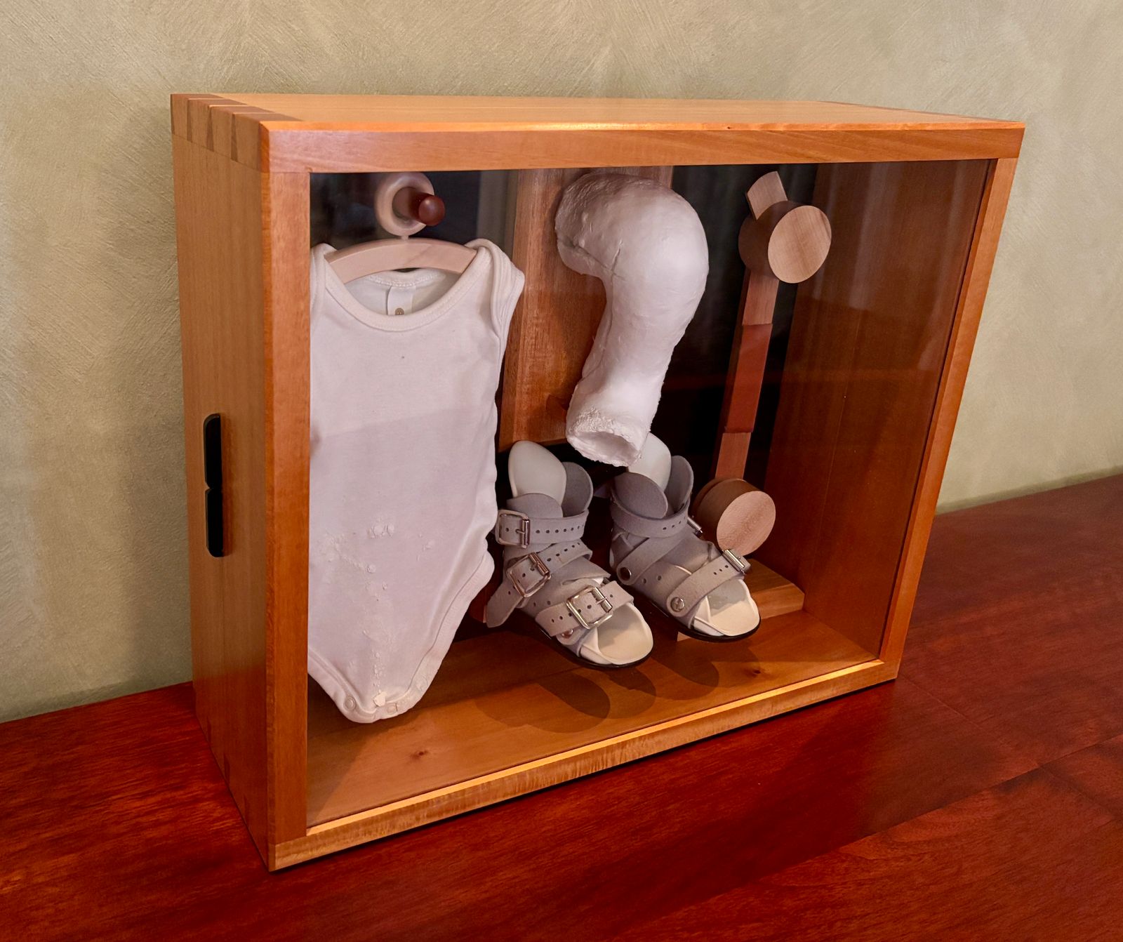 A custom display box for my grandson who has required treatment via ‘the Ponseti method’ for bilateral talipes (clubfoot) starting as a newborn- precious memories for a brave boy, and parents.